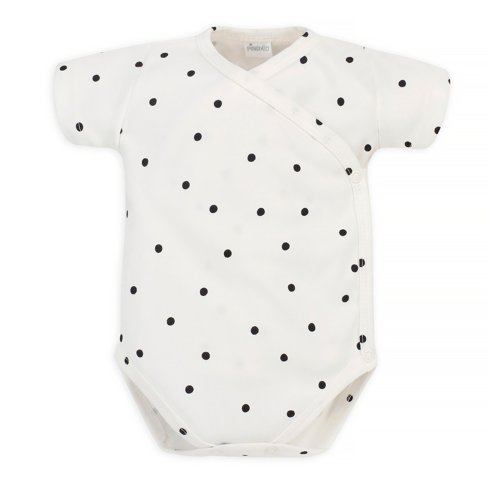 Baby-Body, gebunden, mit kurzen Ärmeln, aus 100 % zarter Baumwolle. Der Umschlagausschnitt mit sicheren, nickelfreien Druckknöpfen macht das Anziehen und Wickeln Ihres Babys ganz einfach. Das Outfit wird mit Schlafanzügen und einer Mütze aus der gleichen Kollektion großartig aussehen. Ein Babybody ist ein wesentlicher Bestandteil der Babyausstattung eines Neugeborenen. Es wird in Polen hergestellt.