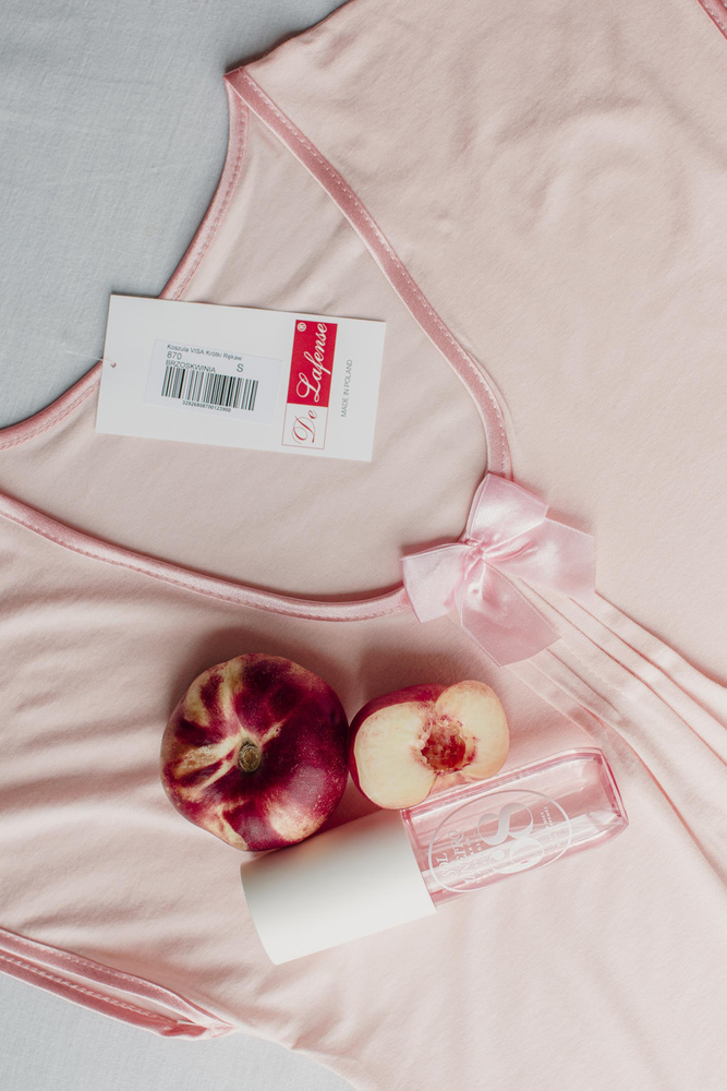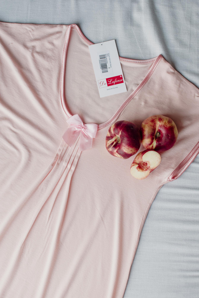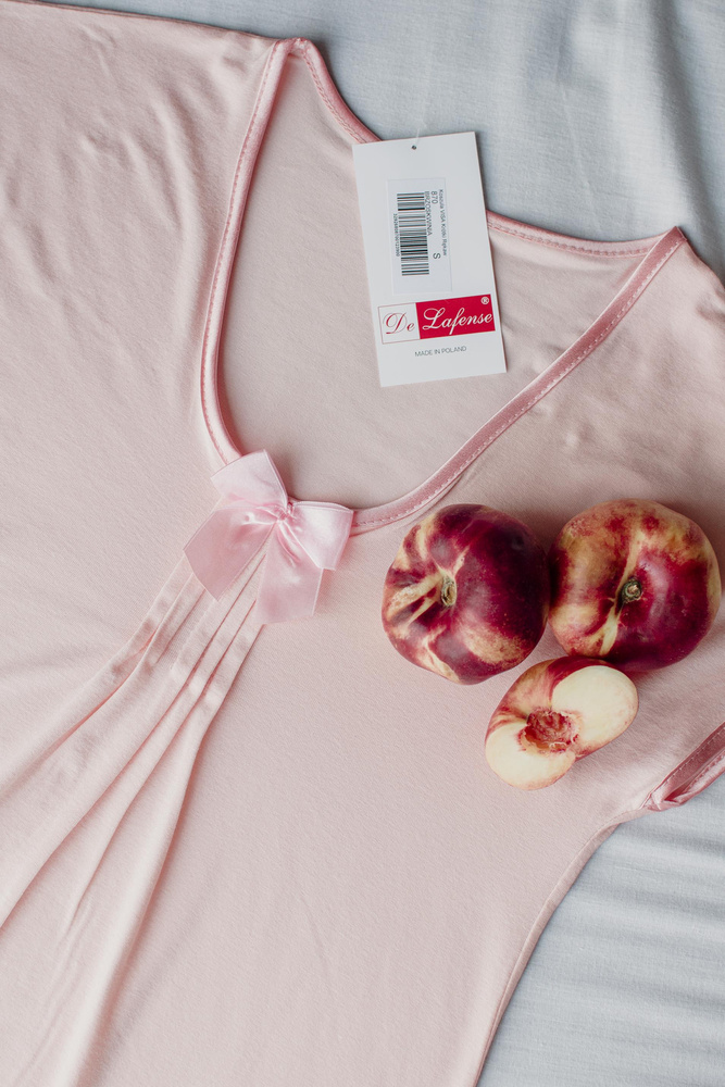 Äußerst bequemes und zugleich charmantes Hemd. Weiche Viskose verleiht ihm einen besonderen Charme. Modell mit kurzen Ärmeln. Eine Schleife auf Brusthöhe.