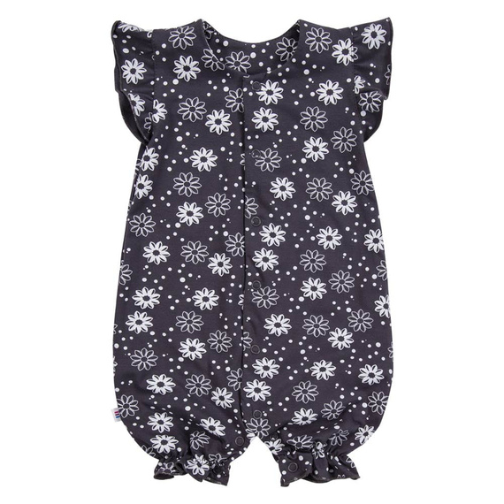Ein bezauberndes Blumenmuster auf einem graphitfarbenen Hintergrund lässt den Strampler äußerst mädchenhaft und modisch aussehen. Der praktische Druckknopfverschluss erleichtert das schnelle Umziehen, was besonders für Eltern praktisch ist.