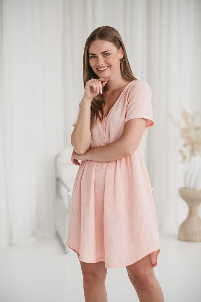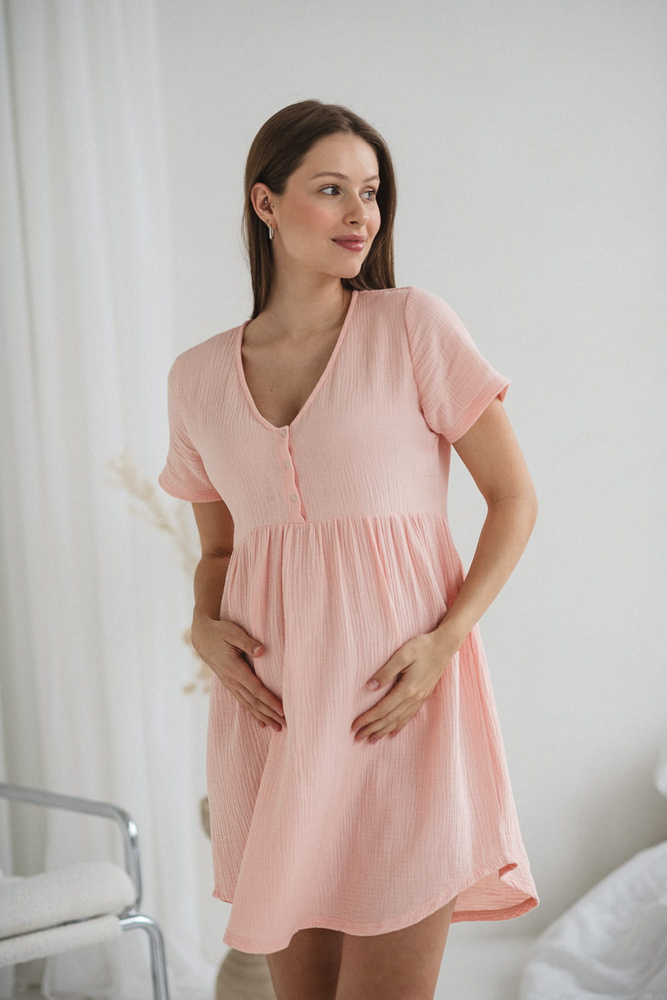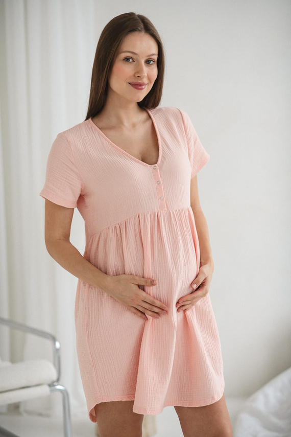 Umstands- und Stillnachthemd Aurora aus Musselin, Milk&Love, Lachsfarben