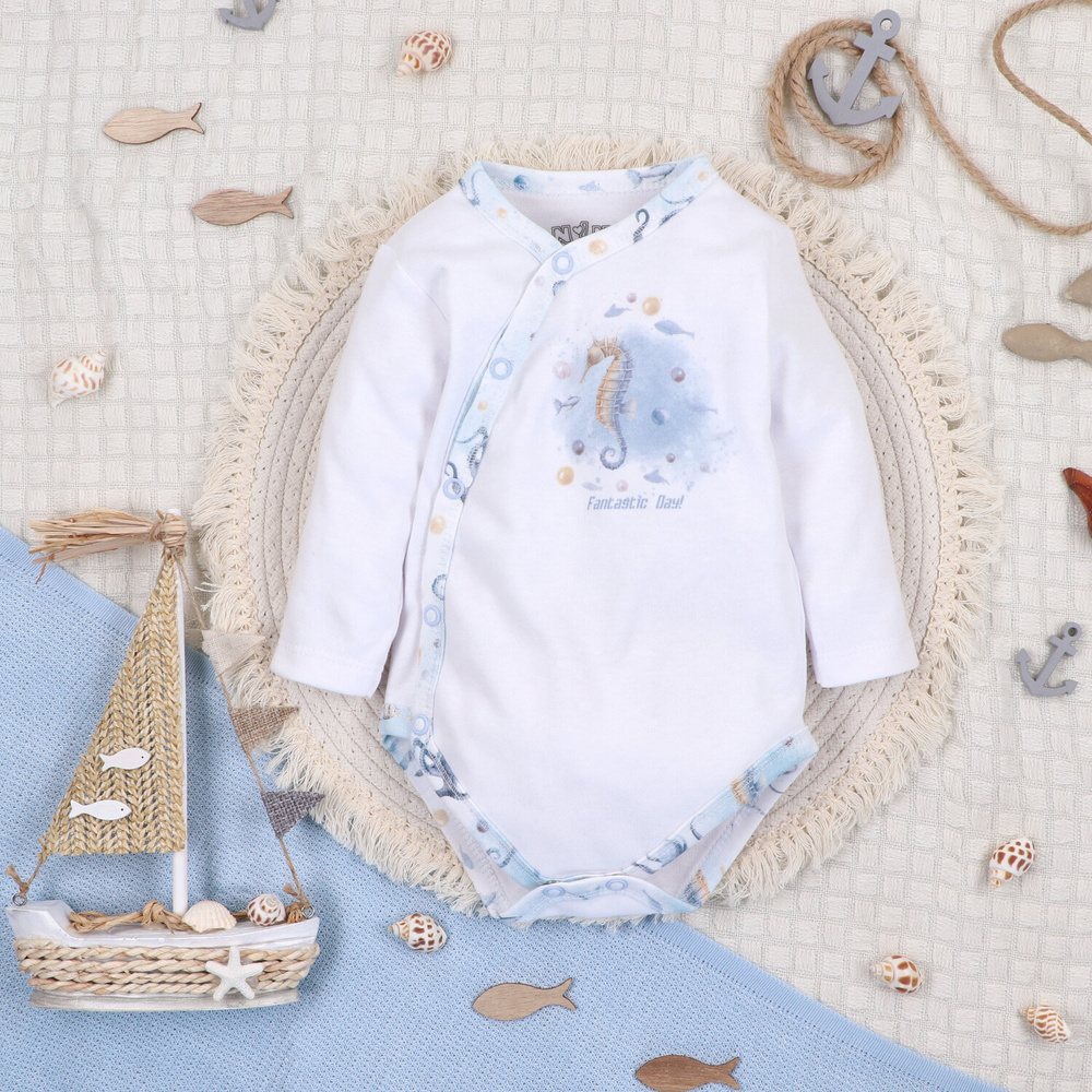 ABN-5442 Sea Of Joy Nini weißer Umschlag-Body – Bio-Baumwolle, für Babys