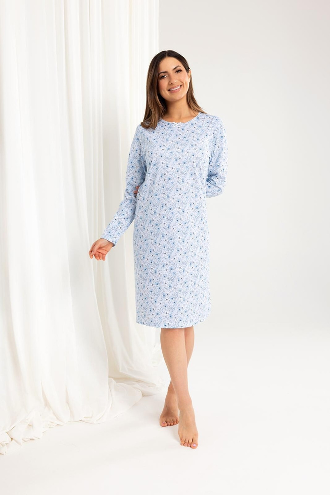 Regina 164 Nachthemd ist eine Kombination aus klassischem Design, Funktionalität und Komfort. Es wurde für Frauen entwickelt, die Wert auf bequemen Schlaf und natürliche Stoffe legen. Lange Ärmel und weiche, atmungsaktive Baumwolle sorgen an kühleren Abenden für angenehme Wärme, ohne dass es zu Überhitzung kommt.