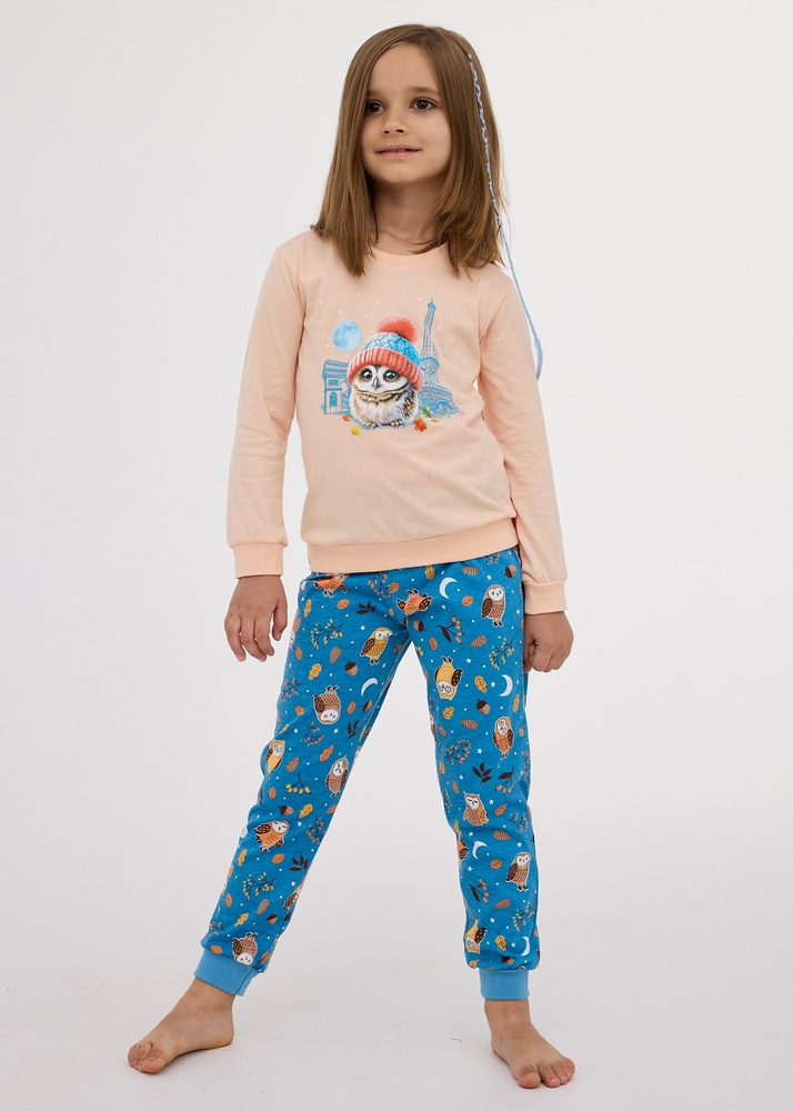 977/188, 978/188 Piżama dziewczęca Paris – bawełna, długi rękaw, kolor brzoskwiniowy