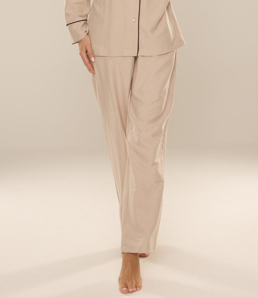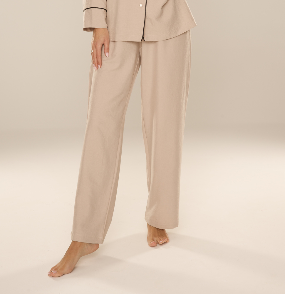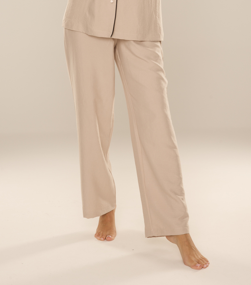 Maeve 875 De Lafense Damen Pyjamahose - lang, einfarbig, mit Taschen - sand