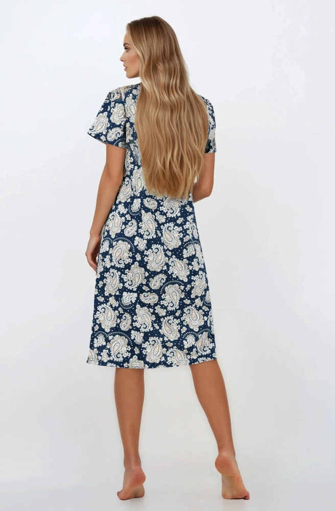 Saphire Nights von Momenti Per Me ist ein klassisches Nachthemd, das Natürlichkeit mit Komfort verbindet. Es besteht aus 100 % weicher, atmungsaktiver Baumwolle und ist perfekt für wärmere Nächte. Der kurze Ärmel sorgt für Bewegungsfreiheit und der schlichte, feminine Schnitt betont die zarte Silhouette. Dies ist ein perfektes Angebot für Frauen, die Wert auf klassischen Stil, hochwertige Materialien und Schlafkomfort legen. Perfekt für den täglichen Gebrauch und zum Packen für eine Reise. Polnisches Design, italienische Seele – Momenti Per Me.