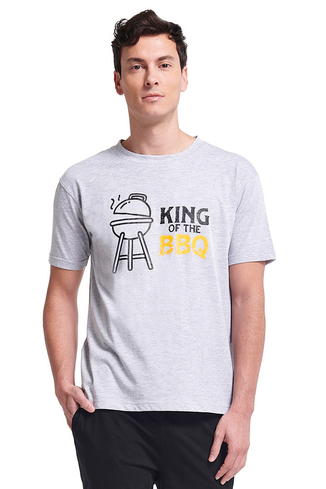 Gianny Męska piżama Sorbetto szara – krótki rękaw, szorty, nadruk, bawełna