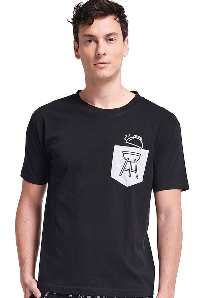 • Bequemer Gianna-Herrenpyjama mit T-Shirt und Shorts . Leichter Schnitt, Druck auf der Vorderseite, elastischer Bund mit Kordel. Perfekt für wärmere Tage.