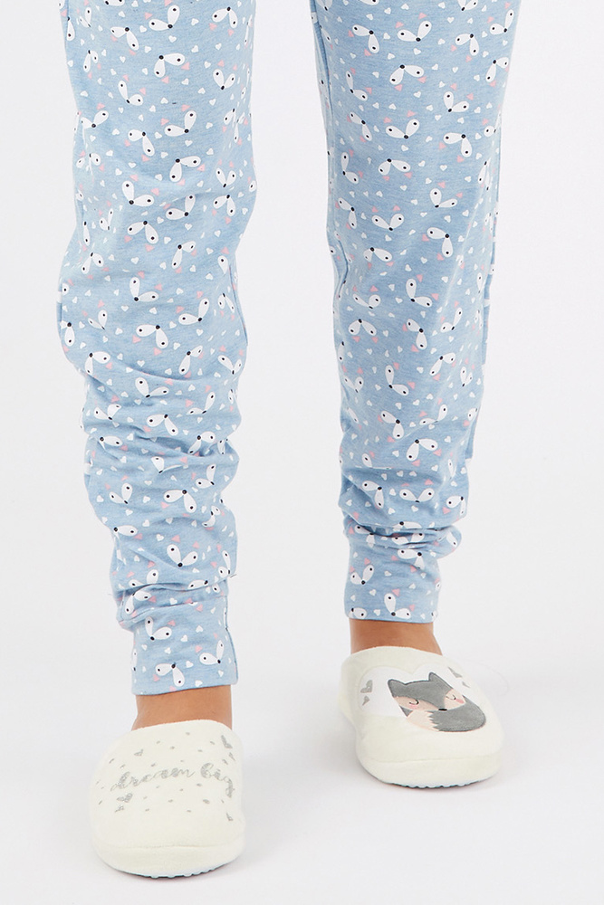 - Weicher Damenhausschuh mit flexibler Innensohle und rutschfester Sohle. Verziert mit einem Druck und einer 3D-Applikation. Perfekt für kalte Tage. Zusammensetzung: 100 % Polyester.