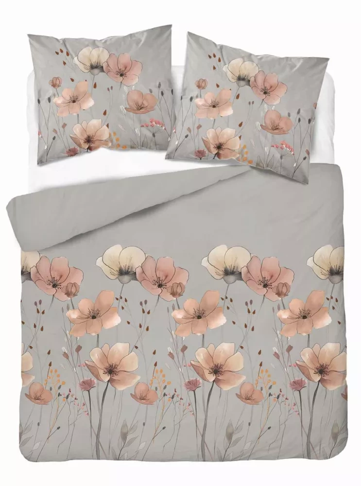 5493 A Detexpol Satin Stories Satinbettwäsche grau | 100 % Baumwolle, Satinbindung, Reißverschluss, Geschenkverpackung
