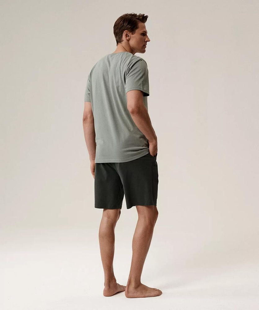 Herrenpyjama NMP-396 – grün/khakifarbene Baumwolle, kurze Ärmel, leicht und bequem für den Sommer