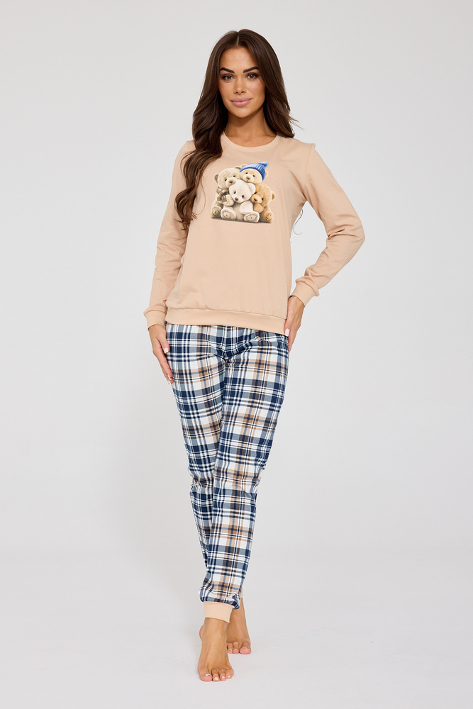 • Cornette Bears Damen-Pyjama – 100 % Baumwolle, T-Shirt mit Aufdruck und langen Ärmeln, karierte Hose, Bündchen, Geschenkverpackung.
