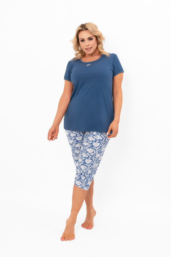 • Bequemer Damenpyjama aus Baumwolle mit kurzen Ärmeln und 3/4-Hose. Das Modell Boma vereint Einfachheit und Funktionalität für bequemes Schlafen und Entspannen zu Hause.