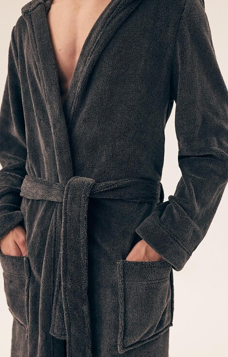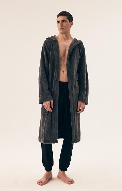 • Henderson Mild 43012 Herrenbademantel aus weichem, warmem Stoff. Modell mit Kapuze, Bindegürtel in der Taille und praktischen Taschen. Perfekt für kältere Tage.