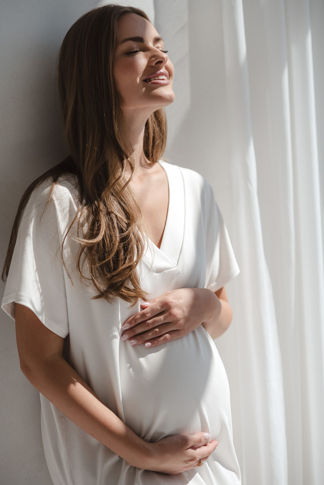 Das Nachthemd Moon ist ein Modell, das speziell für schwangere Frauen und stillende Mütter entwickelt wurde, die Komfort, Funktionalität und Eleganz in einem suchen. Hergestellt aus Viskose höchster Qualität, ist es extrem weich, seidig glatt und angenehm im Griff. Der Stoff ist nach Öko-Tex Standard 100 zertifiziert, was bedeutet, dass er auch für die empfindlichste Haut sicher ist.