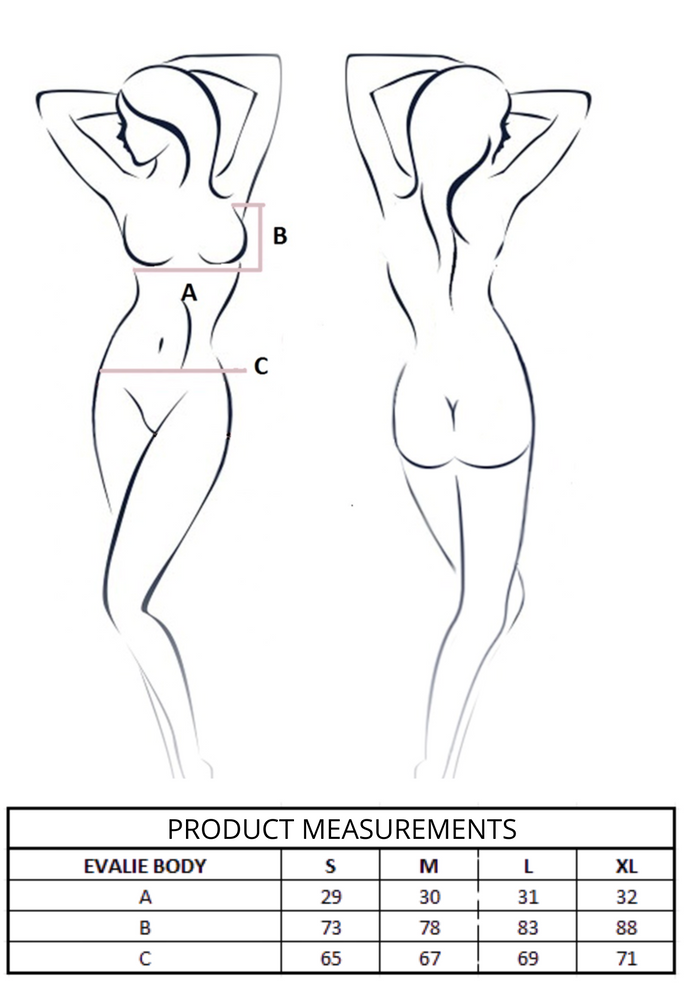 Evalie Black Leidenschaft Perfekt für romantische Anlässe, elegante Styles oder als bequemer Alltags-Body. Es ist eine Kombination aus Luxus und Funktionalität in einer femininen Version.