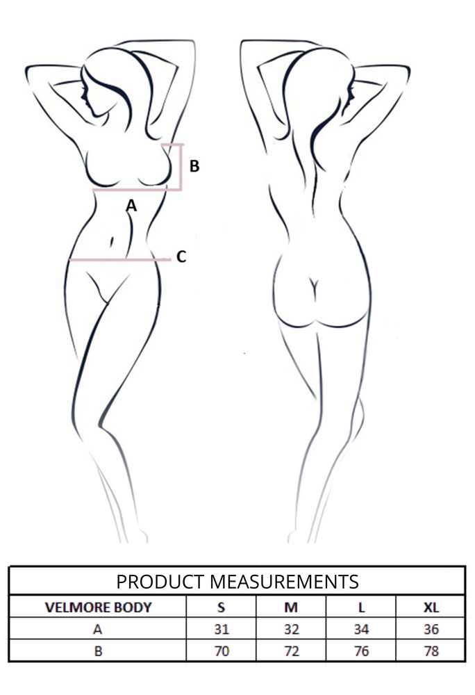 Velmore Violet Passion eignet sich gut als sinnliche Unterwäsche, als Element eines eleganten Outfits oder als modischer Body für den täglichen Gebrauch.