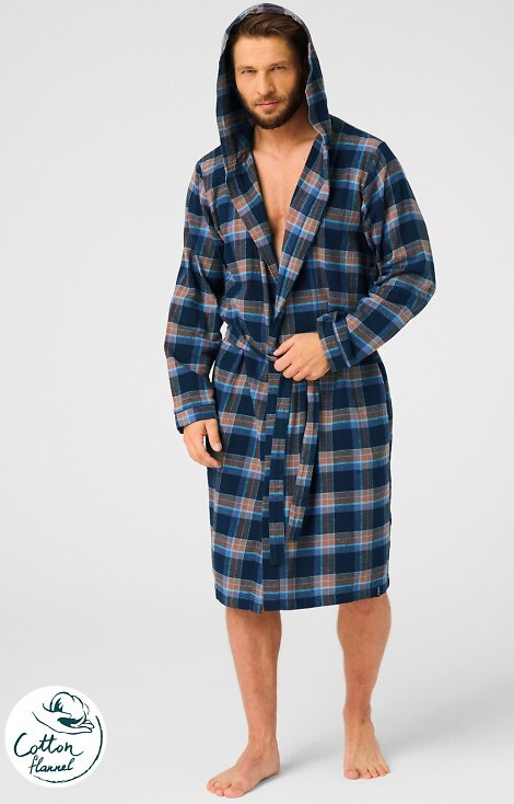 MGL 431 Key Jeans Herrenbademantel – kariert, weich, Schalkragen