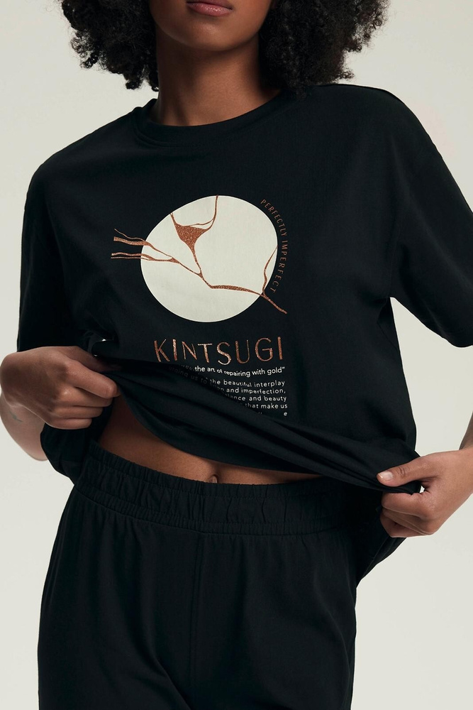 Damenpyjama 43728 Dairoku schwarz – Baumwolle, kurze Ärmel, Fischerhose