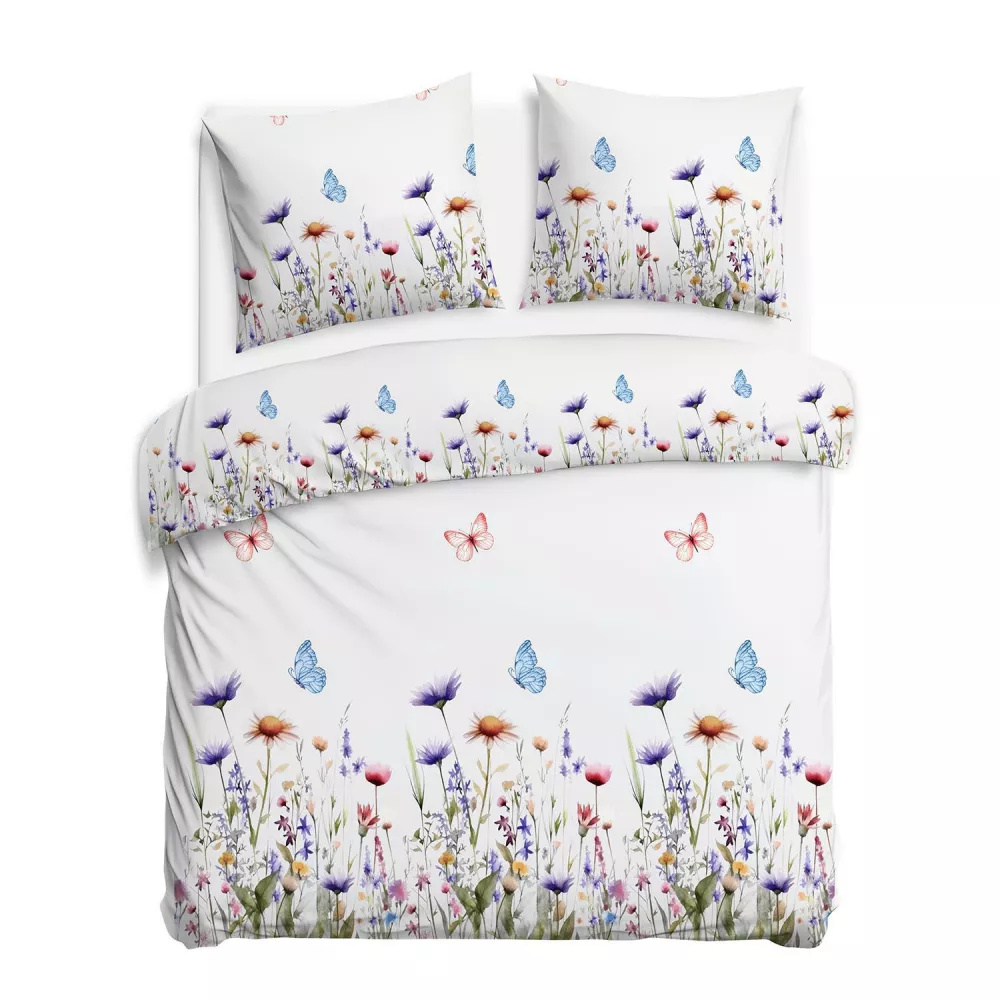 31512/1 Flannelette Darymex-Flanellbettwäsche, weiß, bunte Blumen – Set, 100 % Baumwolle, warm und weich