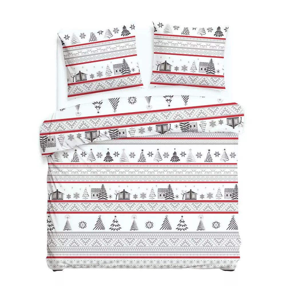 31514/1 Weihnachts-Flanell-Bettwäsche Flanelove Darymex grau rot – Set aus 100 % Baumwolle, warm und weich