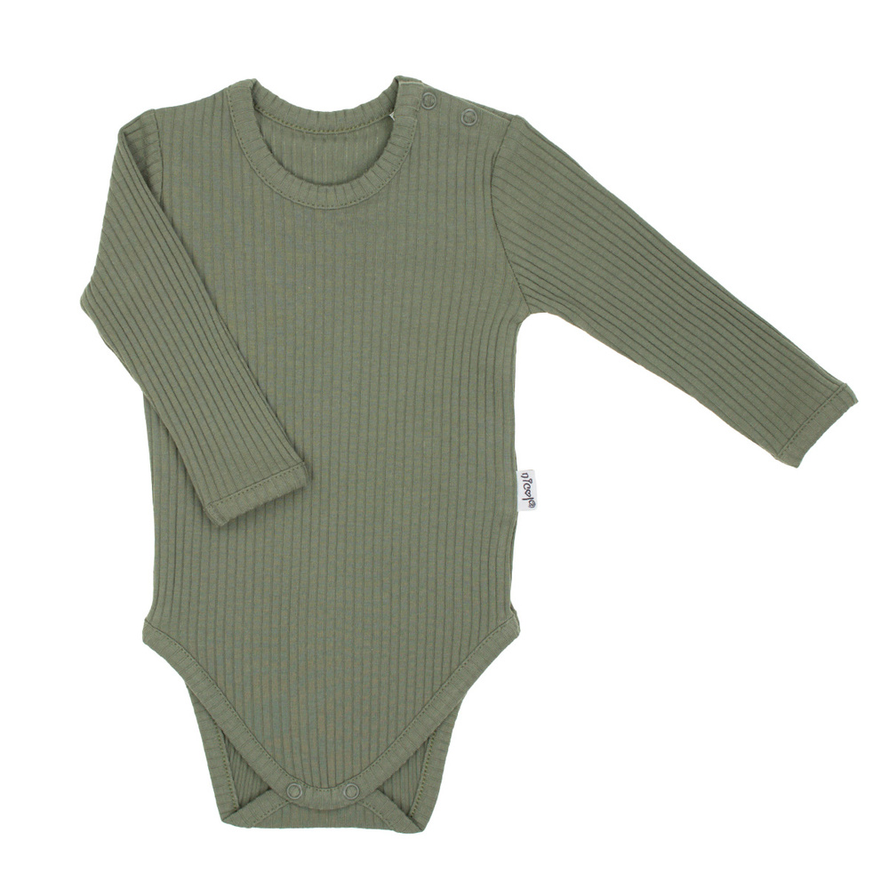 Druckknöpfe an Schulter und Schritt erleichtern das Anziehen und Wickeln des Babys. Durch die langen Ärmel eignet sich der Body perfekt für kältere Tage und die Khaki-Farbe ist modisch.