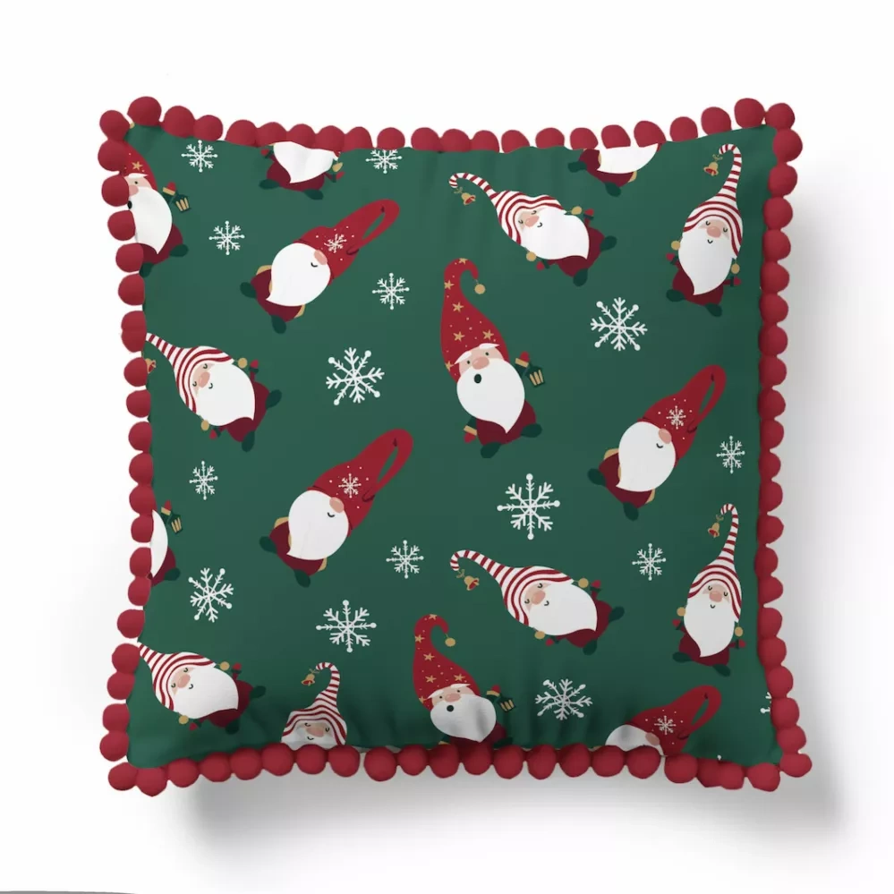 5383 Ein dekorativer Weihnachtskissenbezug Weihnachtsdeko Detexpol, Zwerge und Schneeflocken auf grünem Hintergrund – Reißverschluss