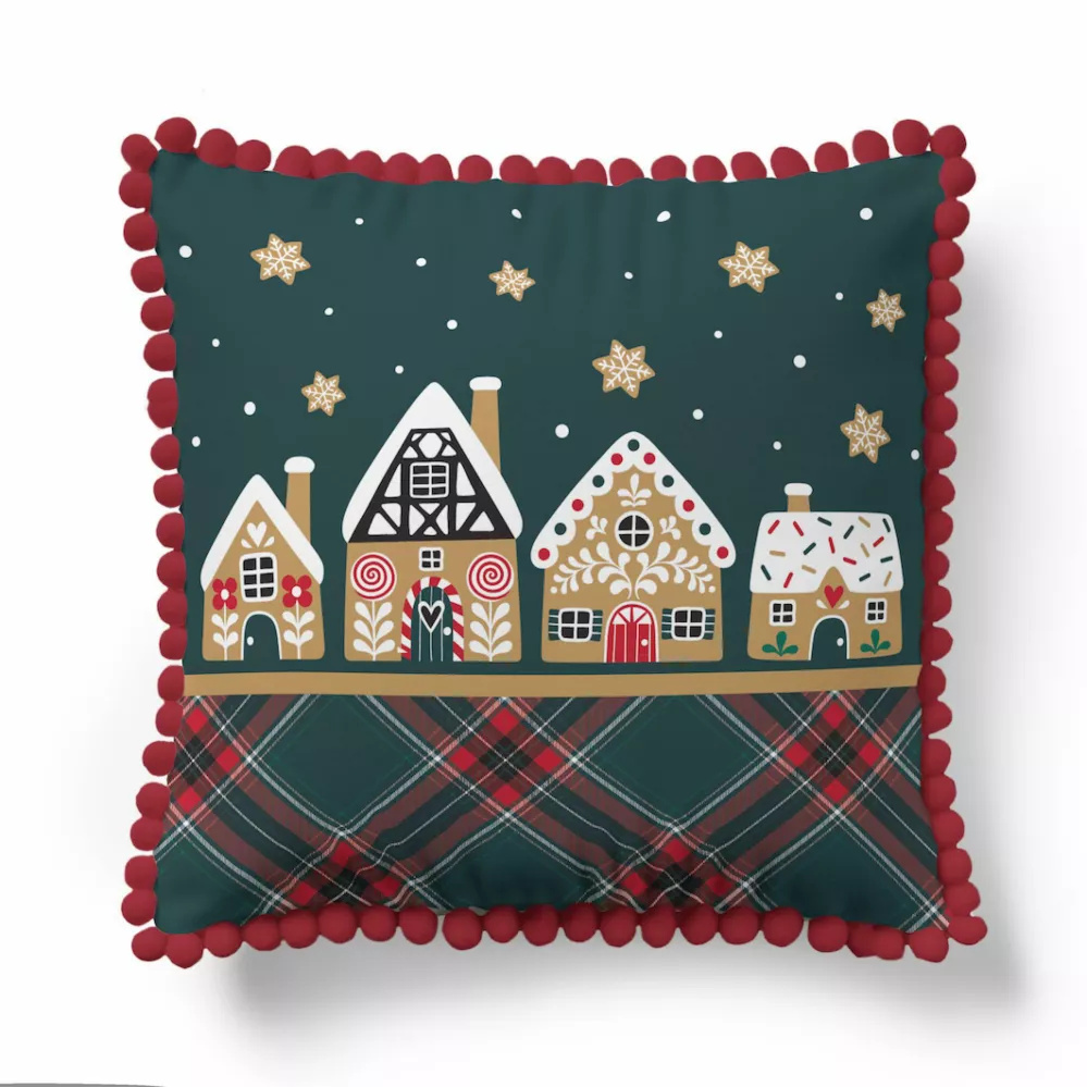 5379 A Dekorativer Weihnachtskissenbezug Weihnachtsdeko Detexpol Lebkuchenhaus und Sterne - Reißverschluss