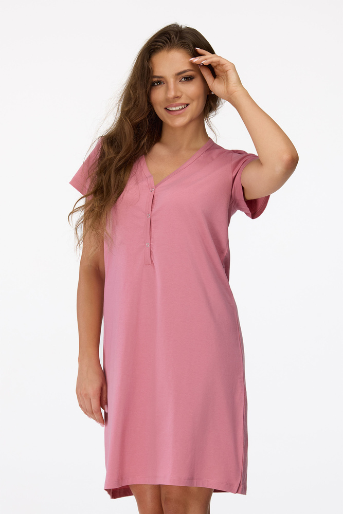 Ja. 20 Senizo Umstandsnachthemd Altrosa – 100 % Baumwolle, kurze Ärmel, Stilldruckknöpfe