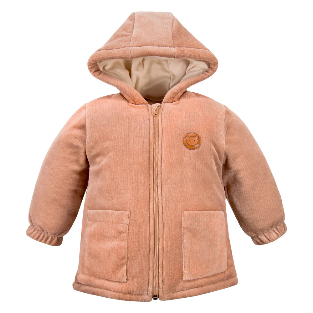 Das Modell verfügt über eine praktische Kapuze, die vor Wind und Frost schützt, zwei Fronttaschen und einen Reißverschluss zum einfachen Anziehen. Verziert mit einem dezenten Teddybär-Aufnäher vereint es Funktionalität mit einem charmanten, kindlichen Stil.