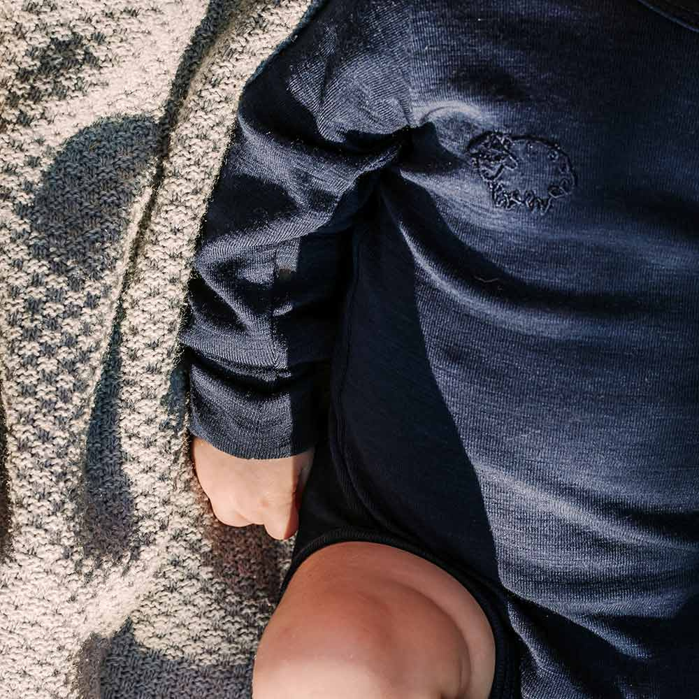 Merino Eevi Baby-Body mit Umschlag, Marineblau – 100 % Merinowolle, Thermoregulierung