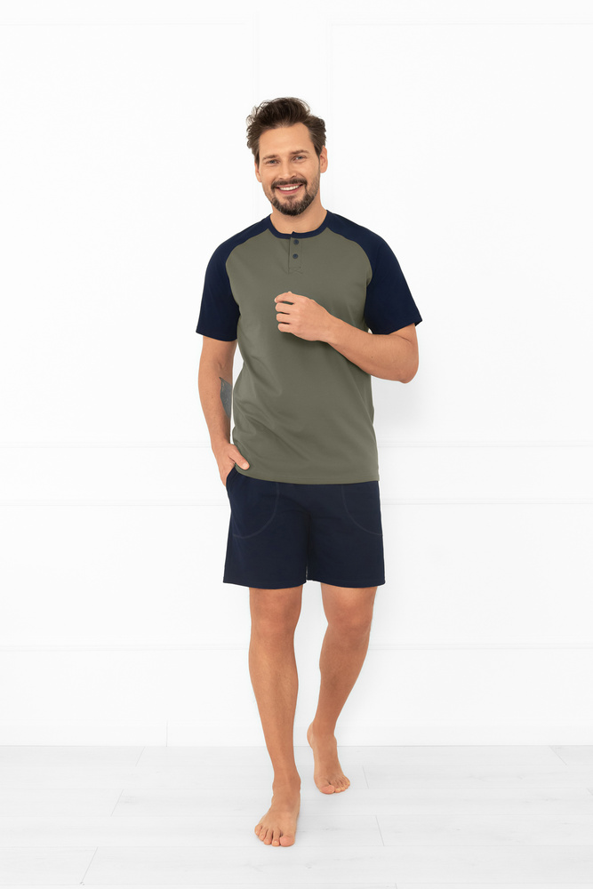 • Leichter Schlafanzug mit kurzen Ärmeln und Shorts für Männer. Modell Alexander, 100% Baumwolle - bequem für den Sommer und den täglichen Gebrauch.