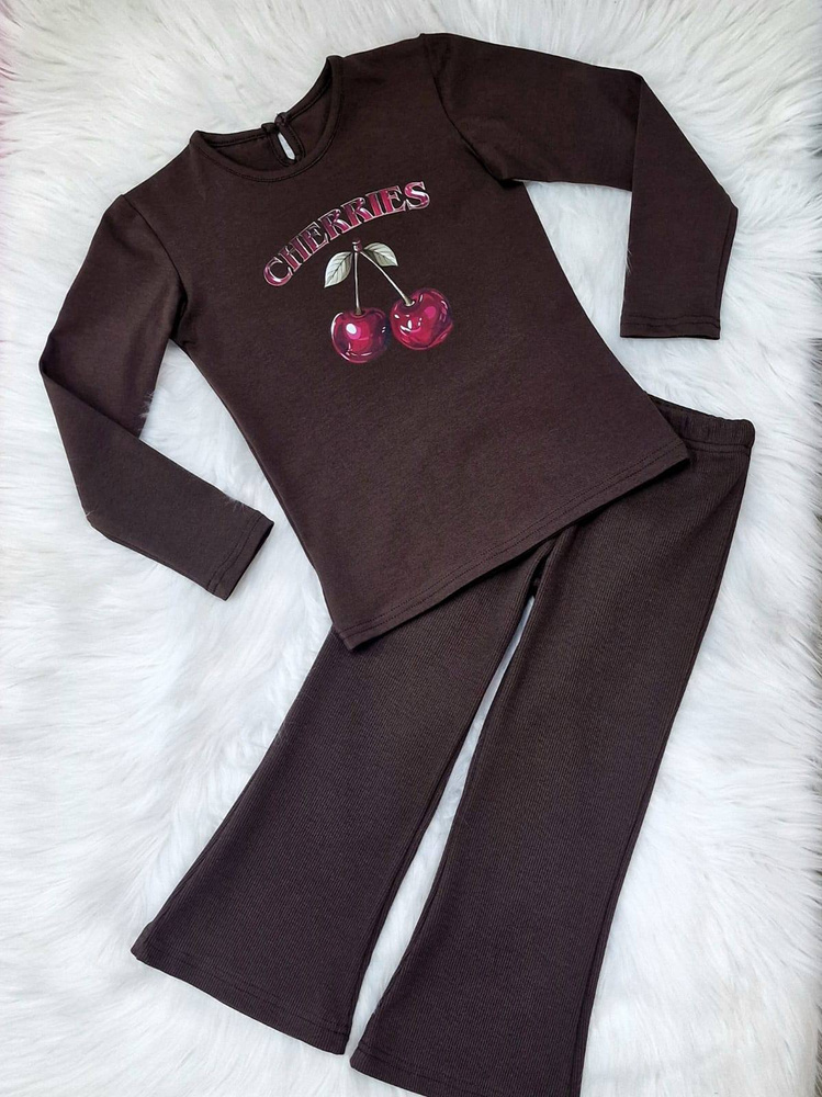 Cherries Bambarillo Mädchenbluse, dunkle Schokolade – Baumwolle, lange Ärmel, mit Aufdruck