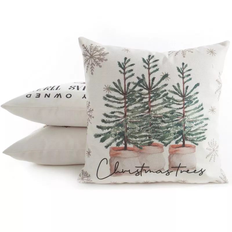 Chp 223 Eurofirany Weihnachtskissenbezug – cremefarben mit grünen Weihnachtsbäumen, dekorativ