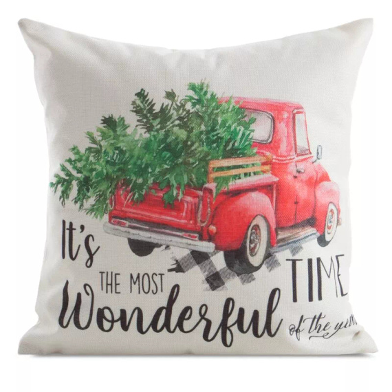 Chp 226 Eurofirany Weihnachtskissenbezug – weiß, rot, mit Auto und Weihnachtsbaum, dekorativ