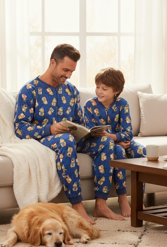 Das Denim-Modell zeichnet sich durch einen lustigen Capybara-Print aus, der dem gesamten Look Charakter verleiht. Der Reißverschluss sorgt für einfaches Anziehen und die Bündchen an Ärmeln und Beinen garantieren eine perfekte Passform.