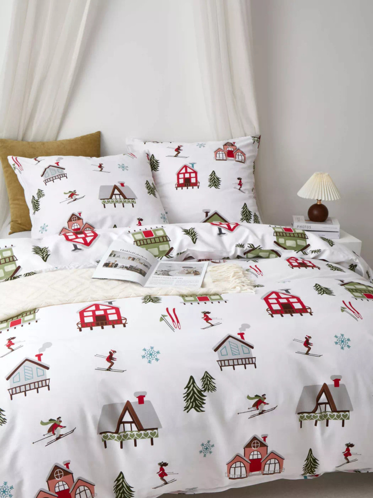 Skifahren Baumwollsatin-Weihnachtsbettwäsche von Needle and Thread weiß, rot, grün – elegant und weich