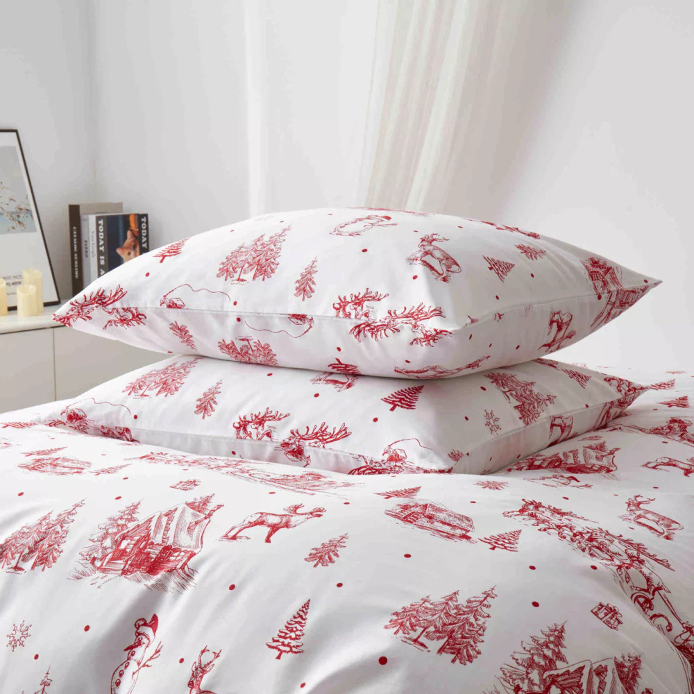 - Luxuriöse Weihnachtsbettwäsche von Pod Needle and Thread aus Satin-Baumwolle. Glatt, weich und leicht glänzend – perfekt für Winternächte.
