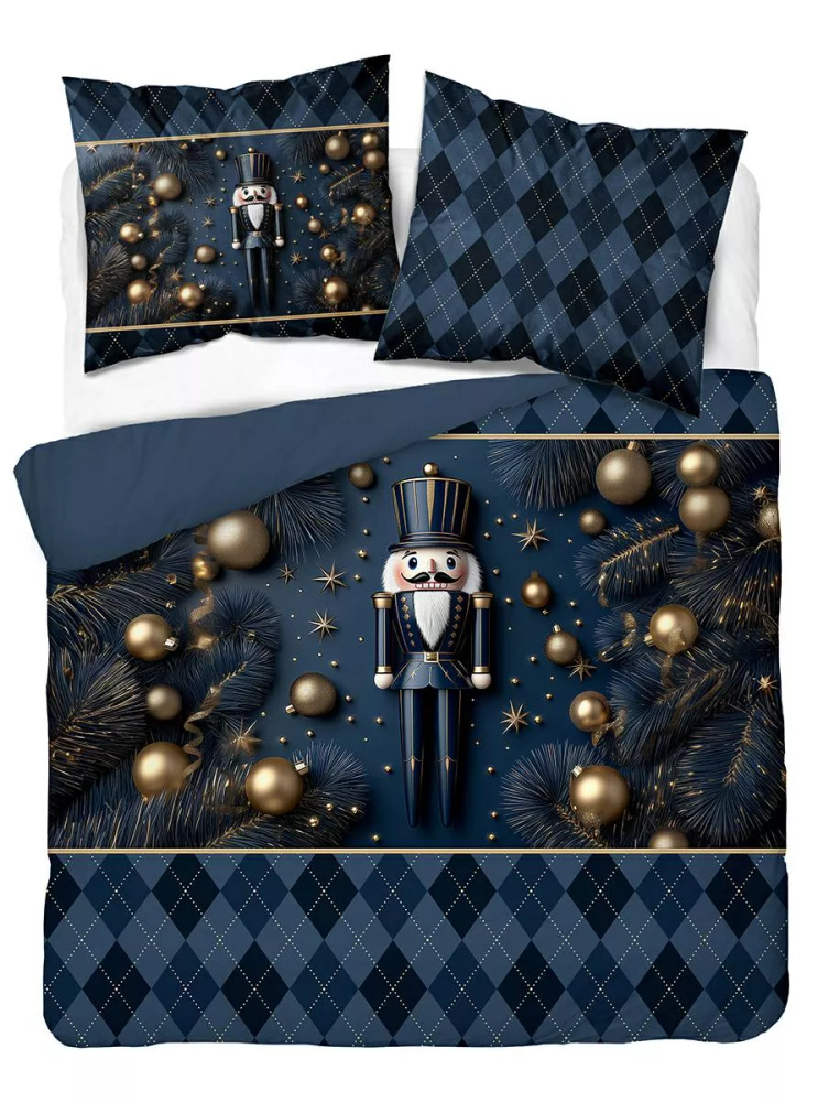 5823 A Weihnachts-Baumwollbettwäsche Christmas Dreams Detexpol marineblau mit Nussknacker – Weihnachtsset aus 100 % Baumwolle