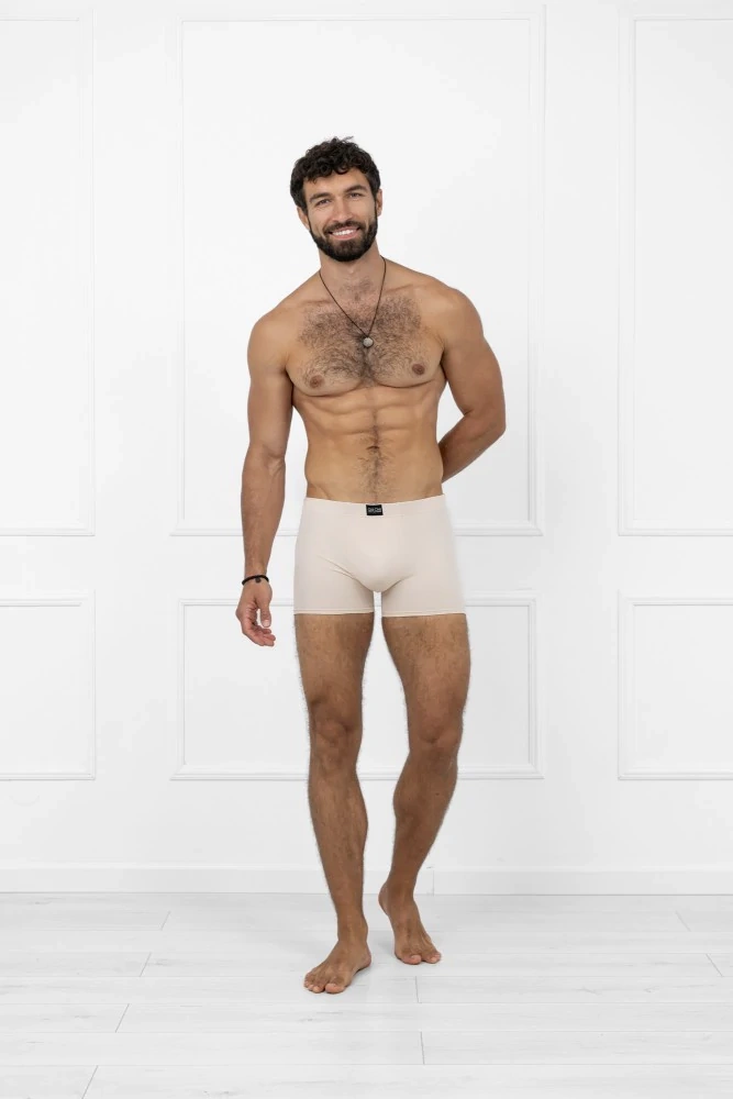 Apollo Herren-Boxershorts im italienischen Stil, beige – Baumwolle, elastisch, tailliert