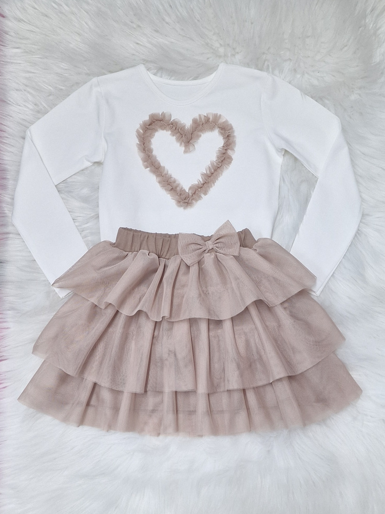 Mia Bambarillo ecru-beige Bluse mit Herzchen für Mädchen - Baumwolle mit Tüllherz