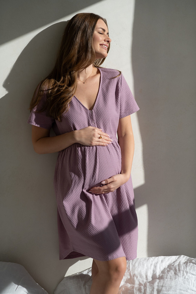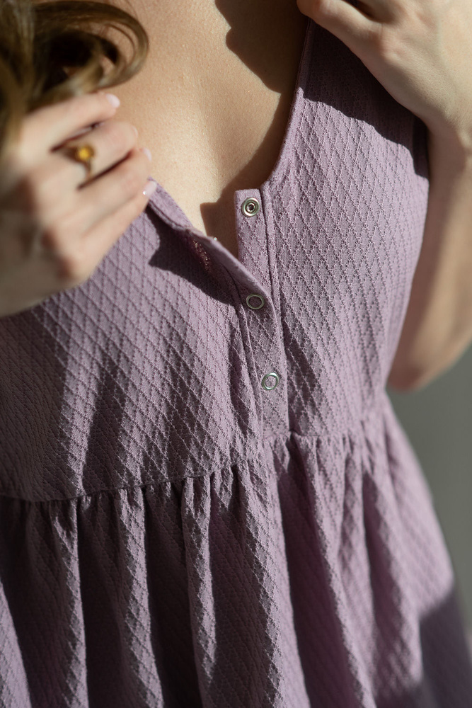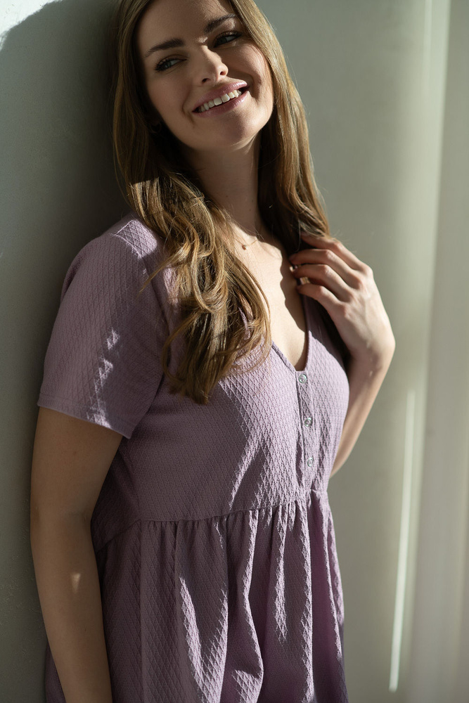 Aurora Umstands- und Stillnachthemd Lavendel Milk&Love – Baumwolle, Knopfleiste, poliert