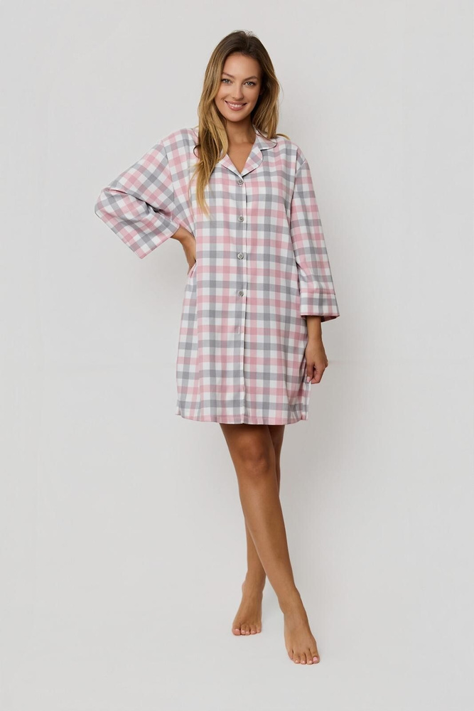 Damenbluse Stella KG80 Mefemi by Nipplex – elegante karierte Bluse aus hochwertigem Stoff, lange Ärmel, Knopfleiste, seitliche Schlitze