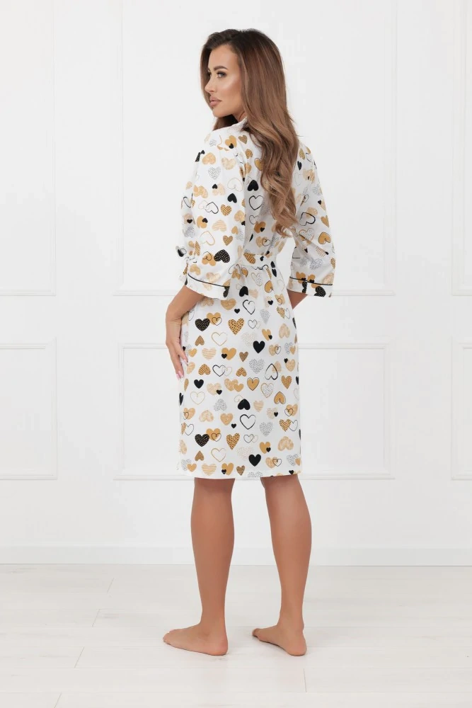 Das dezente Herzmuster verleiht dem Modell eine feminine, leichte Note, ohne aufdringlich zu wirken. Der Bademantel lässt sich ideal mit einem Pyjama im gleichen Design kombinieren und ergänzt die Homewear-Garderobe harmonisch. Gefertigt aus hochwertiger, natürlicher Baumwolle ist das Material atmungsaktiv, weich und hautfreundlich – auch für empfindliche Haut geeignet. Der Stoff bleibt auch nach häufigem Waschen formstabil und angenehm. Hergestellt in Polen, überzeugt der Bademantel durch saubere Verarbeitung und Liebe zum Detail.