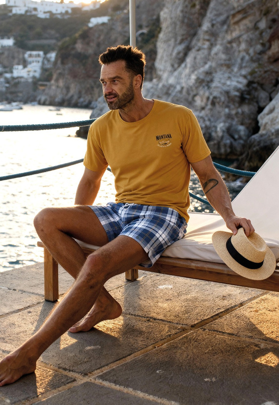 • Herrenpyjama Cornette 326 aus 100% Baumwolle – atmungsaktives Set mit Kurzarmshirt und gemusterter Hose für erholsamen Schlaf und entspannten Komfort zu Hause. Setzen Sie auf natürliche Qualität