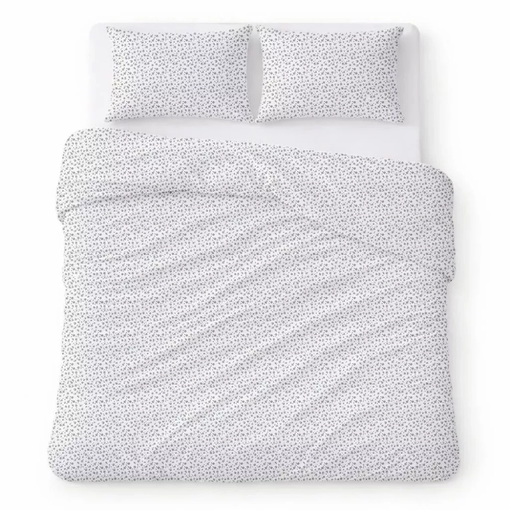 Bettwäsche aus Baumwollkrepp Set atmungsaktiv pflegeleicht white with gray flowers