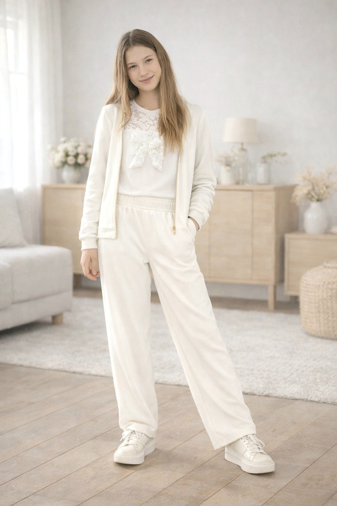 Die Hose ist aus Babycord gefertigt – einem feinen, zarten und leicht elastischen Cordstoff. Das Material fühlt sich angenehm weich an, wirkt optisch leicht und behält gleichzeitig seine Form. Der elastische Bund passt sich der Figur an, ohne einzuengen, was besonders bei aktiven Kindern und Jugendlichen wichtig ist. Praktische Seitentaschen erhöhen die Alltagstauglichkeit und bieten Platz für kleine Gegenstände.
