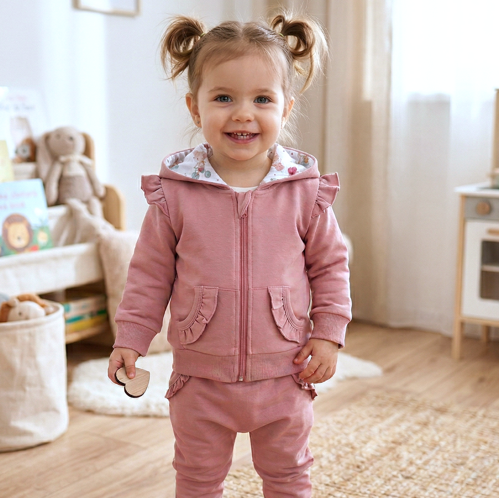 Ein nickelfreier Reißverschluss garantiert Sicherheit und Bequemlichkeit im Alltag. Das eingenähte Label wurde durch ein aufgeklebtes Etikett ersetzt, um Hautreizungen zu vermeiden. Der klassische Schnitt ermöglicht einfache Kombinationen mit Hosen, Leggings oder Jeans und sorgt für einen vielseitigen Look zu Hause, im Kindergarten oder auf dem Spielplatz.