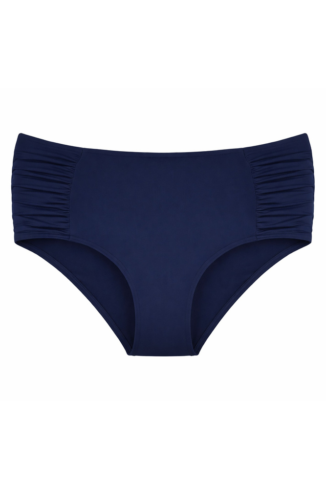 Der hohe Bund hilft, den Bauchbereich leicht zu glätten und die Taille hervorzuheben, wodurch die Figur harmonischer wirkt. Die seitlichen Raffungen verleihen dem Modell eine feminine Note und sorgen gleichzeitig für eine optische Verschmälerung der Hüften. Der klassische Schnitt bietet Bewegungsfreiheit und einen sicheren Sitz ohne Druckgefühl – sowohl beim Entspannen als auch beim Schwimmen.