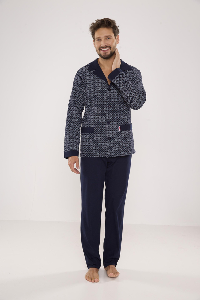 538 Carlo Herren Schlafanzug De lafense - navy blau + quadratisch