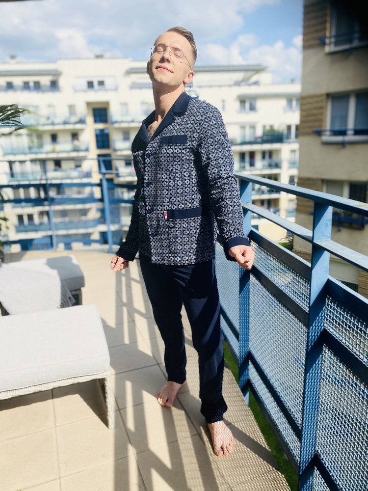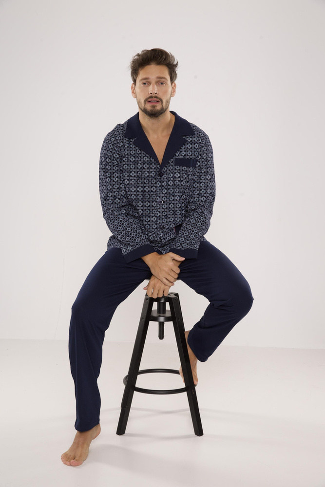 Außergewöhnlich bequemer Herrenpyjama aus hochwertiger 100%iger Baumwolle.